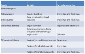 Second, poor knowledge of the law creates a problem because people do not even know when their rights are being violated. For example, many respondents did not know that they had the right to a lawyer or the situation where a marriage is recognised by the law.